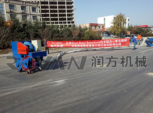上圖為青島太陽成集團(tuán)tyc122cc入口機(jī)械有限公司路面拋丸機(jī)在董家口港附屬公路施工效果圖。